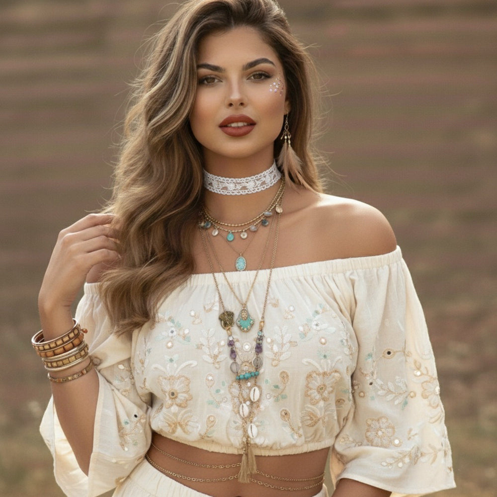 Embrace timeless femininity with the Delicate Daisy Choker. This exquisite piece features a beautiful, finely woven white lace pattern that evokes the intricate simplicity of daisy chains and vintage crochet. Perfect for layering or as a stunning standalone statement, it adds a soft, romantic touch to any outfit.